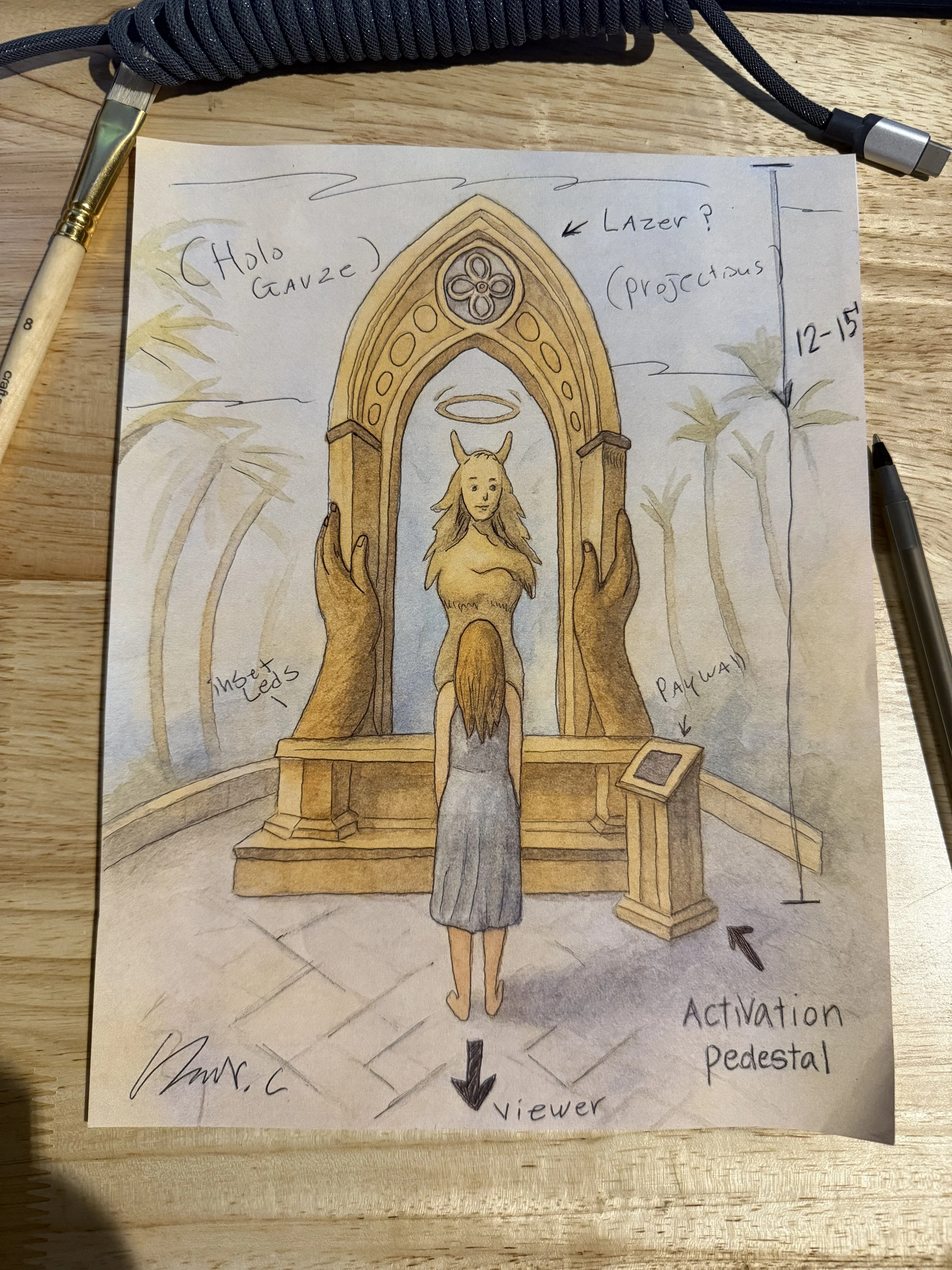 Interaction: Visitors see their augmented, mythic self rendered in real time, controlled by a motion capture array and a proprietary ControlNet LLM.